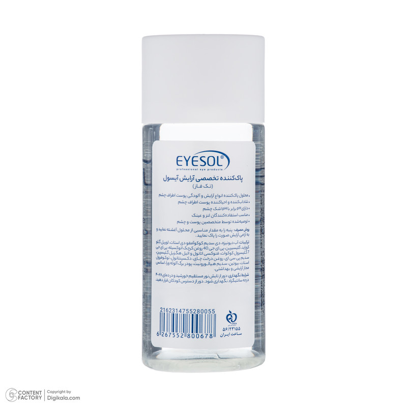 داشتن پوستی زیبا و سالم با اولین اقدام برای پوست یعنی استفاده از پاک کننده آغاز می شود. این محصول با توجه به داشتن ویتامین بیوتین و بپانتن تقویت کننده مژه است، همچنین فاقد الکل، پارابن، اسانس، رنگ و مواد حساسیت زا و میسلار است. محلول پاک کننده چشم و پلک تکفاز آیسول دارای PH برابر با PH اشک چشم بوده و جهت استفاده بعد از عمل های زیبایی پلک و چشم و افراد دارای لنز و عینک مناسب است.