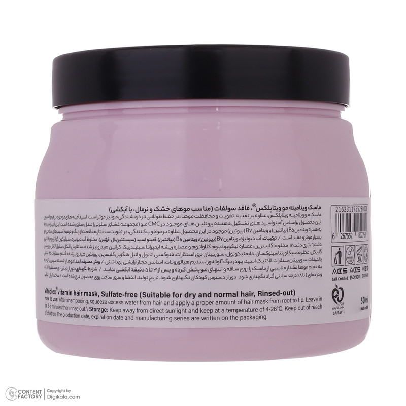 ماسک مو ویتاپلکس مدل Vitamin Care حجم 500 میلی لیتر