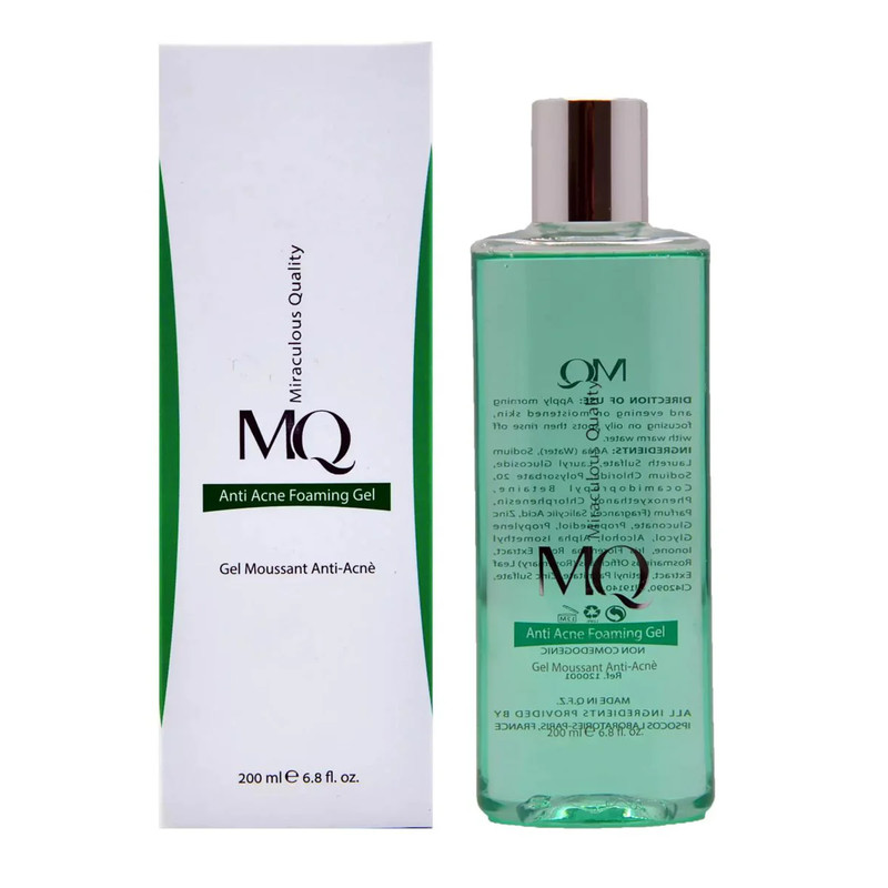 محصولات MQ از مواد بسیار باکیفیت ساخته میشوند. این محصولات در یکیاز معتبرترین لابراتوارهای فرانسه و زیرنظر اساتید باتجربه در صنعت مراقبت از پوست و مو فرموله شده است. این کمپانی، ژل فومی ضدجوش «ام کیو» (Anti Acne Foaming Gel)را روانه بازار کرده است. این محصول یک فوم ژل پاککننده مناسب پوستهای چرب و جوشی مستعد آکنه است و برای صورت استفاده میشود. این فوم، لایه بردار و پاکسازی کننده سلولهای مرده سطح پوست بوده و منجربه تنظیم ترشح چربی پوست با اثر مات کنندگی خواهد شد و علاوهبر خاصیت ضدمیکروبی و آنتی باکتریال، منافذ باز پوست را کوچک می کند. ازطرفی این فوم قادر به جلوگیری از ایجاد جوش پساز اصلاح صورت است. جهت استفاده صبح و شب مقدار مناسبیاز ژل را روی پوست مرطوب بمالید و ماساژ دهید. روی نقاط چربتر بیشتر تمرکز کنید و در پایان با آب ولرم، پوست را بشویید. این ژل در حجم 200 میلیلیتر بهبازار عرضهشده است.