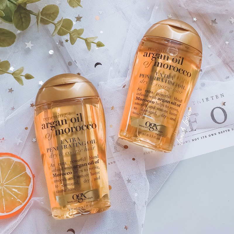 روغن مو آرگان OGX ترکیبی صد درصد خالص از روغن آرگان مراکشی و پرو ویتامین است که باعث تغذیه و تقویت کامل ساقه مو می شود به دنبال آن شفافیت و درخشان شدن مو را در پی دارد. مزایای روغن آرگان که روغنی بسیار نادر است ،به عنوان راز زیبایی برملا شده بر همگان مبرهن است، این روغن طلایی و جادویی توانسته با فرمول خدادادی خود باعث سلامت و تغذیه کامل پوست و مو گردد. بافت بسیار سبک روغن آرگان مو OGX باعث می شود سلامتی وشادابی از دست رفته به موهای شما باز گردد و آسیب های متحمل شده مانند رنگ مو، دکلره، فر و یا صاف کردن مو،اثرات سوءِ بارداری و زایمان طبیعی و… از چهره مو زدوده شود وموهایی چون ابریشم را به ارمغان می آورد. موهای خشک و آسیب دیده خود را به روغن مو آرگان OGX سپرده و اثرات این نرمی و لطافت و درخشندگی را تا۲۴ ساعت به طور کامل مشاهده کنید. موهایی منعطف و شفاف و از همه مهم تر درمان شده را خواهید داشت. روغن آرگان OGX از هسته میوه درخت آرگان به دست می آید، که فقط در مراکش یافت می شود. طول عمر درخت آرگان 150 تا 200 سال است ولی بعد از 30 تا 50 سالگی میوه می دهد. چون درخت در منطقه خاصی رشد می کند، روغن آن هم بسیار نادر است . روغن آرگان محصولی بسیار عالی برای صاف کردن موهای مجعد است. موهای خشک را نرم می کند و درخشش مو را بیشتر می کند. می توان از روغن آرگان برای همه قسمت های مو وقتی که نمناک است استفاده کنید که جنبه درمانی دارد؛ یا فقط برای ساقه های موهایی که دچار خشکی شده اند استفاده نمایید. روغن آرگان بین پولگ های مو نفوذ می کند و مقاومت مو را افزایش می دهد. در نتیجه در رشد مو تاثیر بسزایی دارد. همچنین این روغن مو را به طور طبیعی آبرسانی کرده و از وز شدن مو جلوگیری می کند. موهای وز و خشن ناشی از دکلره کردن، اتوی موی زیاد و... با استفاده از روغن آرگان OGX ترمیم می شوند. این روغن به دلیل توانایی قرار دادن پروتئین در قشر مو، قابلیت درمانی برای مو خوره و شوره سر دارد.