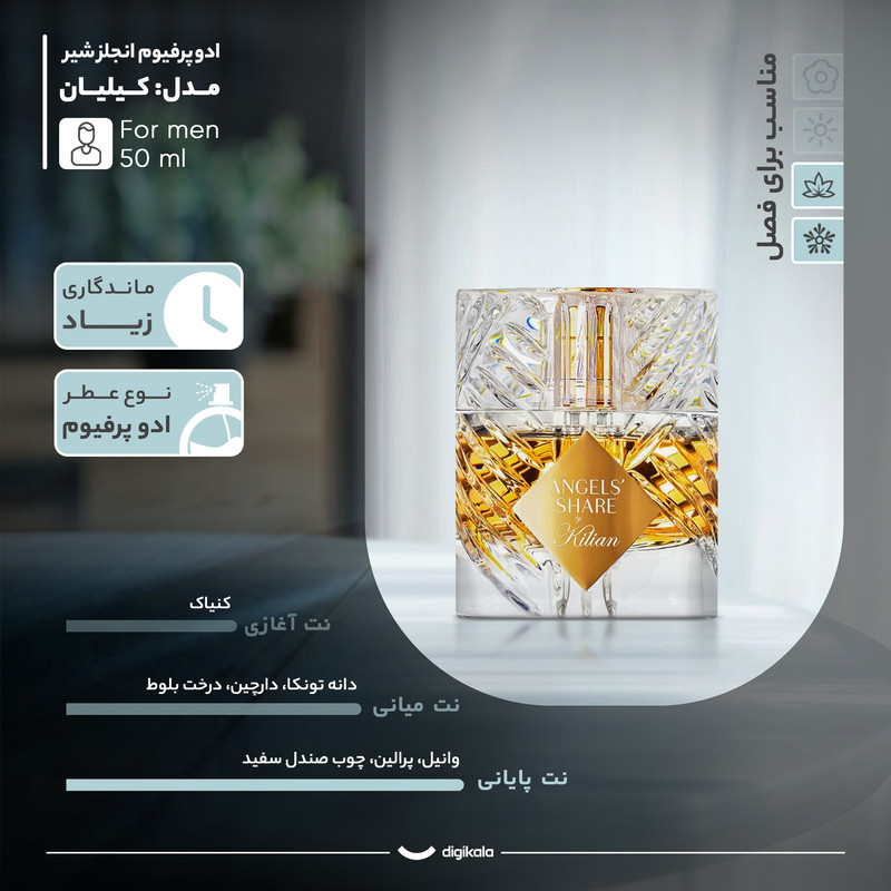 ادو پرفیوم مردانه انجلز شیر مدل کیلیان با حجم 50 میلیلیتر، یک انتخاب بینظیر برای مردانی است که به دنبال عطری با رایحه گرم و دلپذیر هستند. این عطر با طراحی شیشهای شیک و لوکس، حس خاصی از جذابیت و اعتماد به نفس را به شما منتقل میکند. نتهای آغازین این عطر با کنیاک آغاز میشوند که طراوت و گرما را به ارمغان میآورد و حس شگفتانگیزی را در لحظات اول تجربه شما ایجاد میکند. در نتهای میانی، دانه تونکا، دارچین و درخت بلوط، ترکیبی غنی و جذاب را شکل میدهند که عمق و پیچیدگی را به عطر میبخشند. در نهایت، نتهای پایانی شامل وانیل، پرالین و چوب صندل سفید، حس گرما و شیرینی را به عطر اضافه میکنند و تجربهای ماندگار و دلپذیر را رقم میزنند. با پخش بوی قوی و ماندگاری زیاد، این ادو پرفیوم برای استفاده در مناسبتهای رسمی و همچنین فصول پاییز و زمستان ایدهآل است. با انجلز شیر، شما میتوانید در هر جمعی بدرخشید و با بوی خوش و دلپذیر خود، جذابیت و شخصیت خود را به نمایش بگذارید. این عطر، بهترین همراه شما در هر لحظه خواهد بود و شما را به دنیای خاص و لوکس عطرها میبرد.