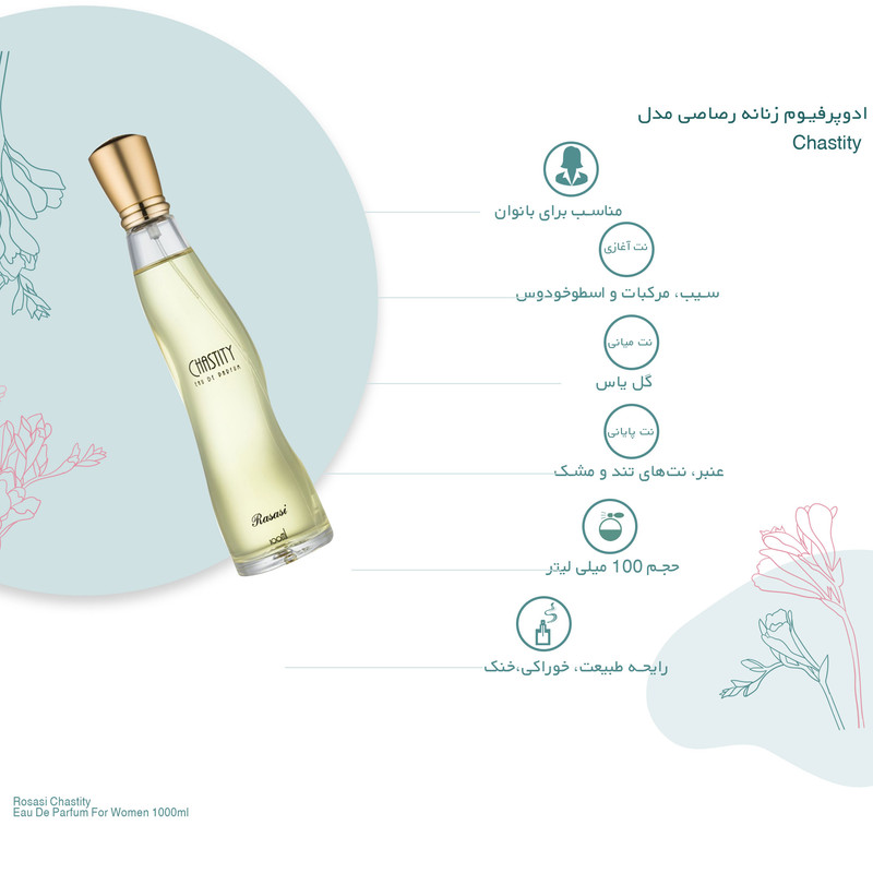 عطر ادکلن رصاصی چستیتی زنانه عطری است شاداب و گلدار که با رایحه تند و دریایی در کنار مرکبات ترش و شیرین آغاز میشود و از همان ابتدا حالوهوای یک عطر تابستانی را منتقل میکند. با گذر زمان، رایحه عطر کمی شیرینتر و ملایمتر شده اما همچنان حس شاداب و پرانرژی خود را حفظ میکند. در این مرحله، رایحه لطیف گل یاس به ترکیب اضافه میشود تا ملایمتی زنانه و گلفام به عطر ببخشد. این ادوپرفیوم مخصوص خانمهای جوان و جذاب طراحی شده و با رایحه خنک و نشاطبخش خود، بهترین انتخاب برای روزهای بهاری محسوب میشود.
